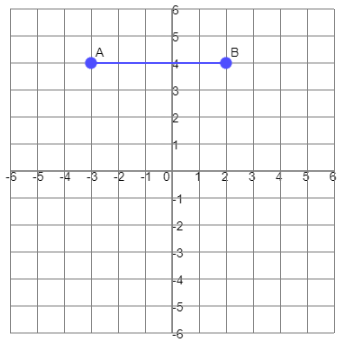 What is the distance between A ( -3, 4) and B (2, 4)?
